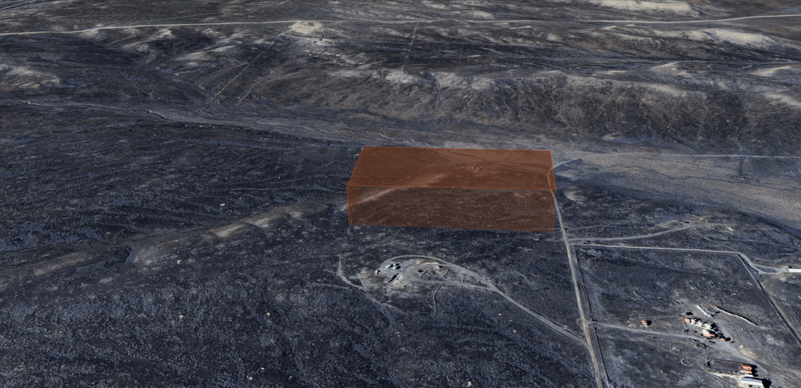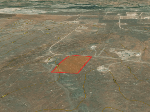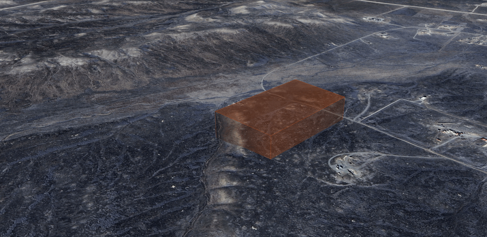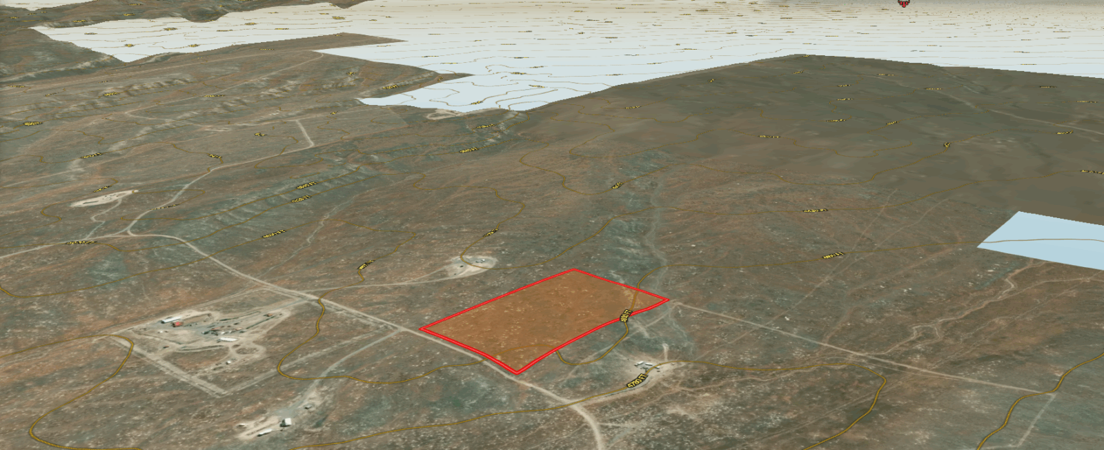Access: No visible direct road County road access, possible access via unnamed dirt roads / trails.